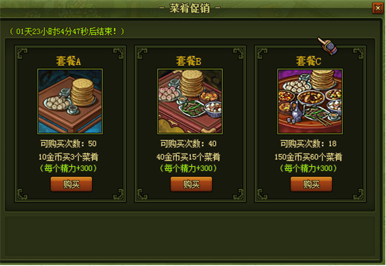 活动开启后点击活动按钮即可打开页面直接购买菜肴
