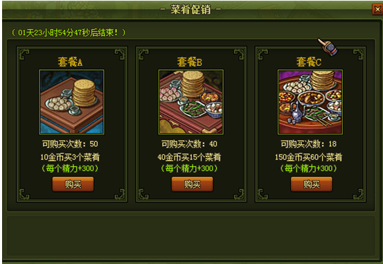 活动开启后点击活动按钮即可打开页面直接购买菜肴