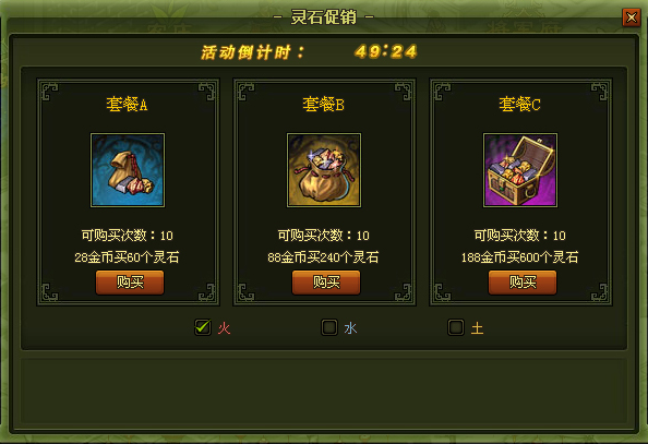 1、活动开启后点击活动按钮即可打开页面直接购买灵石