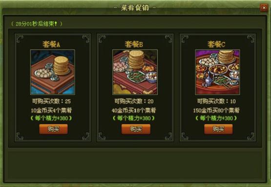 活动开启后点击活动按钮即可打开页面直接购买菜肴