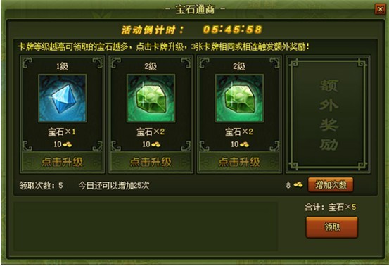 3、可使用金币升级卡牌,3张同等级卡牌或相连时领取时可获得额外特殊奖励。