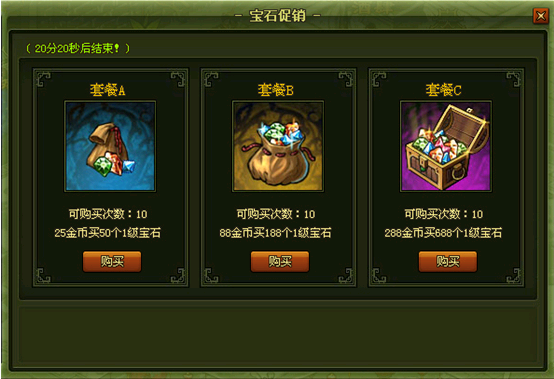 活动开启后点击活动按钮即可打开页面直接购买宝石