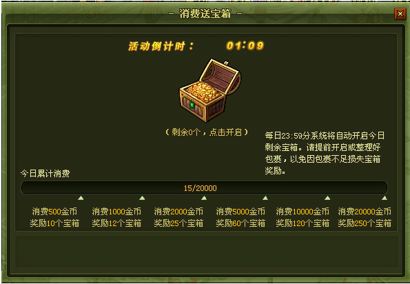 1、消费提示数量的金币即可获得宝箱
