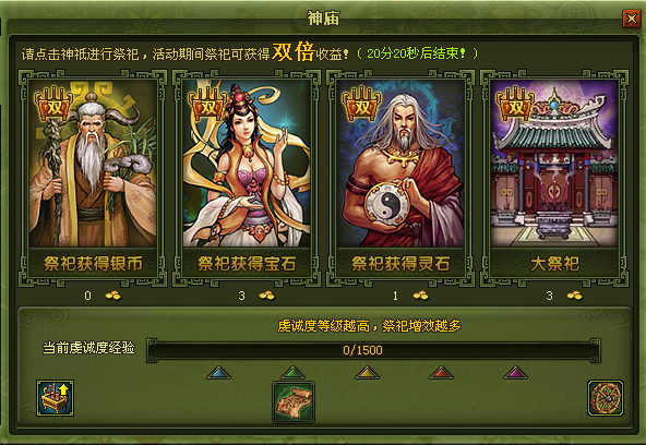 上一篇:团购优惠大放送,银币促销优惠多 下一篇:祭祀翻倍,多祭多送