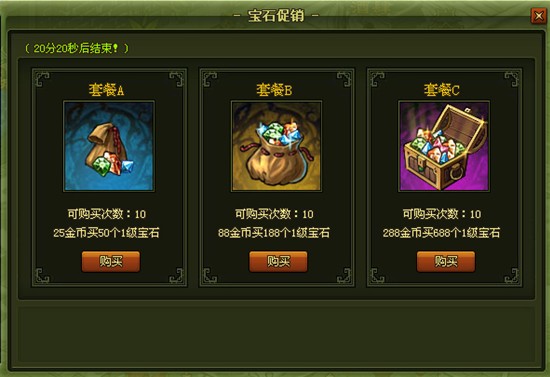 活动开启后点击活动按钮即可打开页面直接购买宝石