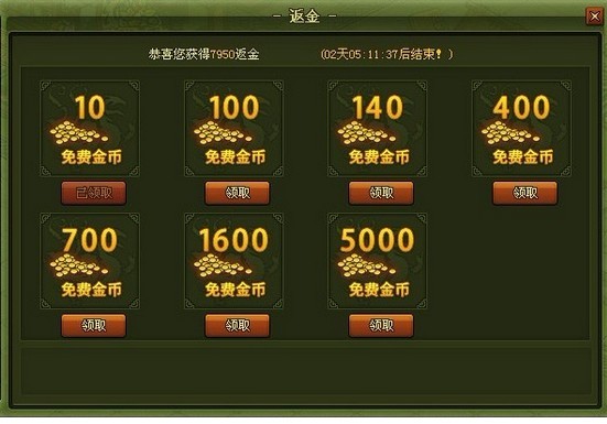 活动期间,累积充值即可获得高额金币返利,充越多返越多;