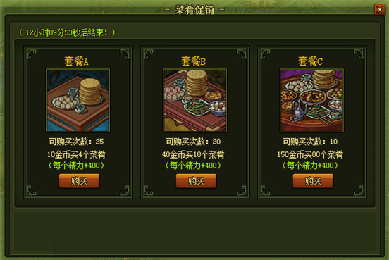 活动开启后点击活动按钮即可打开页面直接购买菜肴