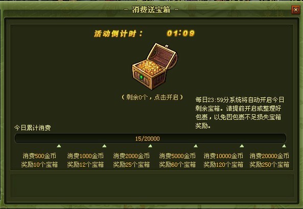 1、消费提示数量的金币即可获得宝箱
