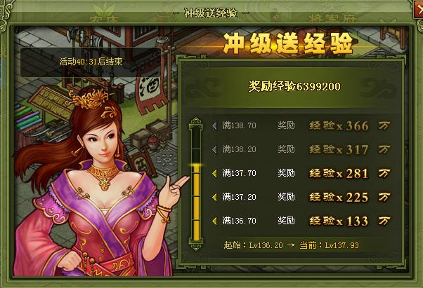 b.活动截止时等级,高于活动开始时等级1.5级:可获0.5级奖励;
