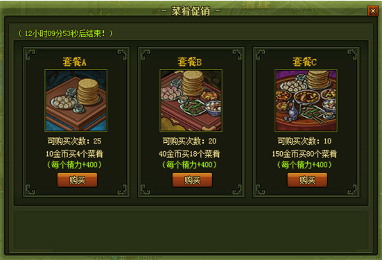 活动开启后点击活动按钮即可打开页面直接购买菜肴