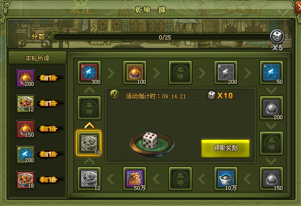 2.每轮抽奖可投5次骰子,奖品每轮刷新一次。