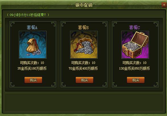 活动开启后点击活动按钮即可打开页面直接购买银币