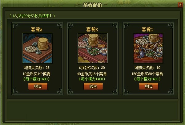 活动开启后点击活动按钮即可打开页面直接购买菜肴