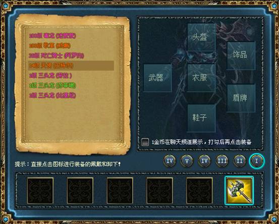 各主城“商店”出售各等级白色品质装备。而其他高品质装备可通过藏宝图系统以及官方活动获得。