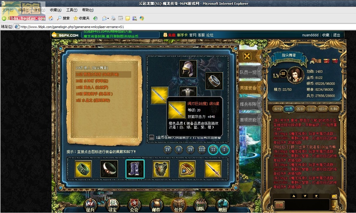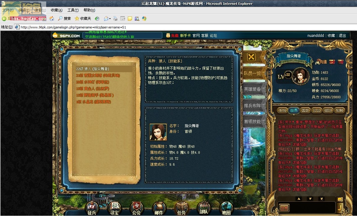 游戏截图:(截图必须清晰显示:角色名、英雄名、兵种、以及浏览器标题和地址,否则不予认可,一张图即可。)