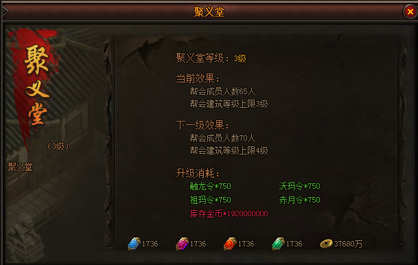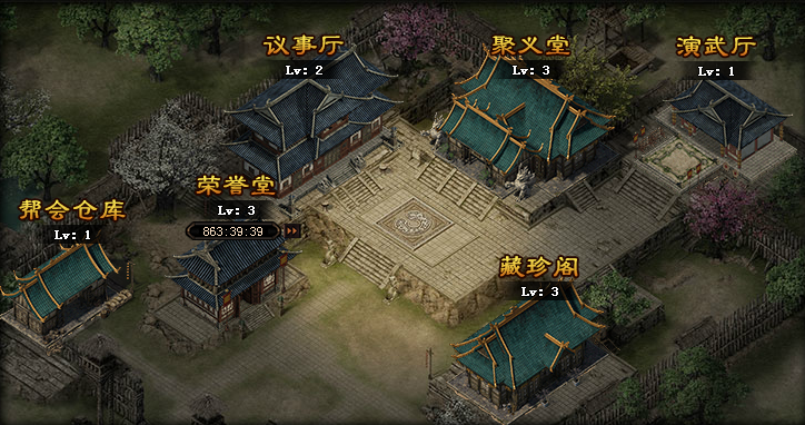 聚义堂:帮会主建筑,决定了帮会等级、帮会成员上限与帮会其他建筑的等级上限;