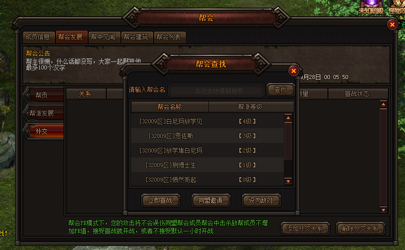 具有宣战与被宣战次数的帮会,帮主可以对同样拥有剩余次数的非盟帮发起宣战:
