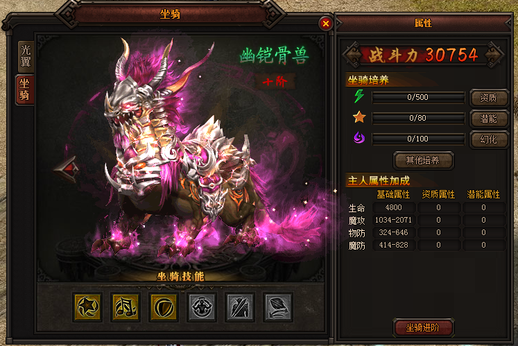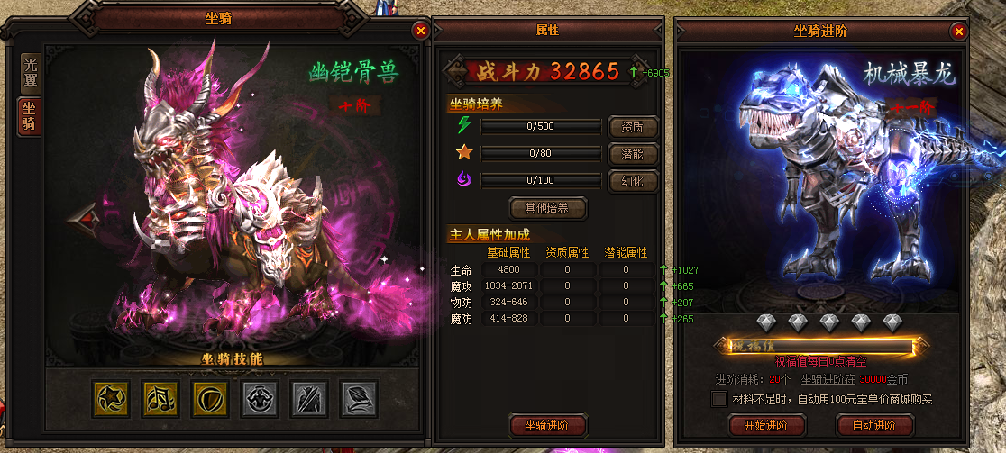 10阶及更高等级的坐骑、光翼有了新的进阶方式:每阶现在分为5个星级,每升1星即可获得1部分下一阶的属性,升满5星即可进阶至下一阶;