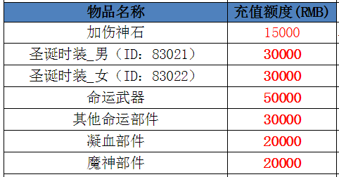 活动期间单日每充值达到以下标准即可获得对应装备或者加伤神石一枚