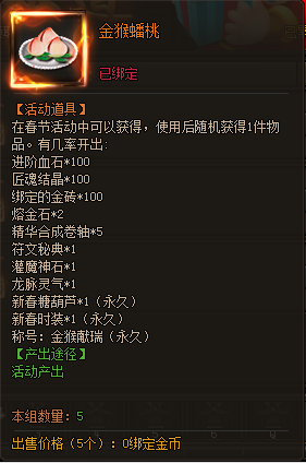 累计登录5天:金猴蟠桃*15
