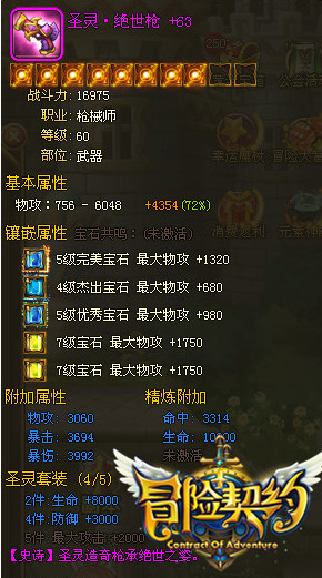 5.宝石完美共鸣:装备上镶嵌5颗完美宝石,将获得完美共鸣属性加成,宝石等级越高,加成属性比例越大。