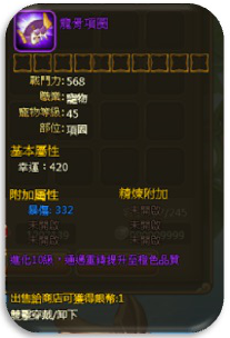 3、 龙骨项圈为宠物紫色装备,能大幅增加宠物的战斗力哦!