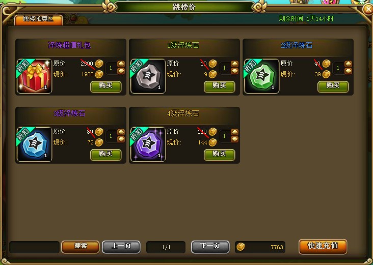 温馨提示:打折淬炼石需要在“跳楼拍卖区”购买才能享受折扣哦。