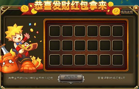 活动期间,玩家每天消费金币的10%将进入红包,在10月1日当天可以一次性领取这些金币红包(超时未领取的将通过邮件发送)