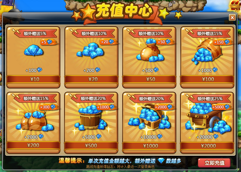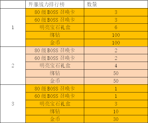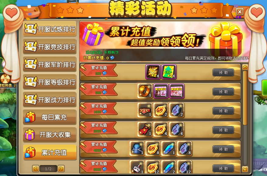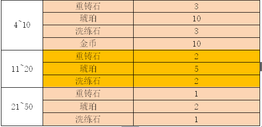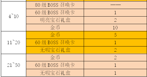 活动期间内,累计充值达到以下对应金额,即可领取一份回馈奖励。