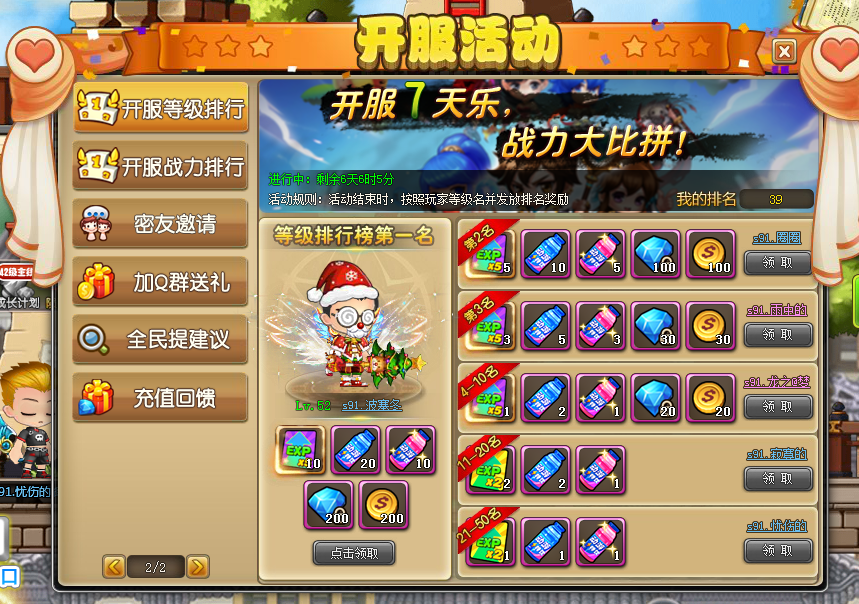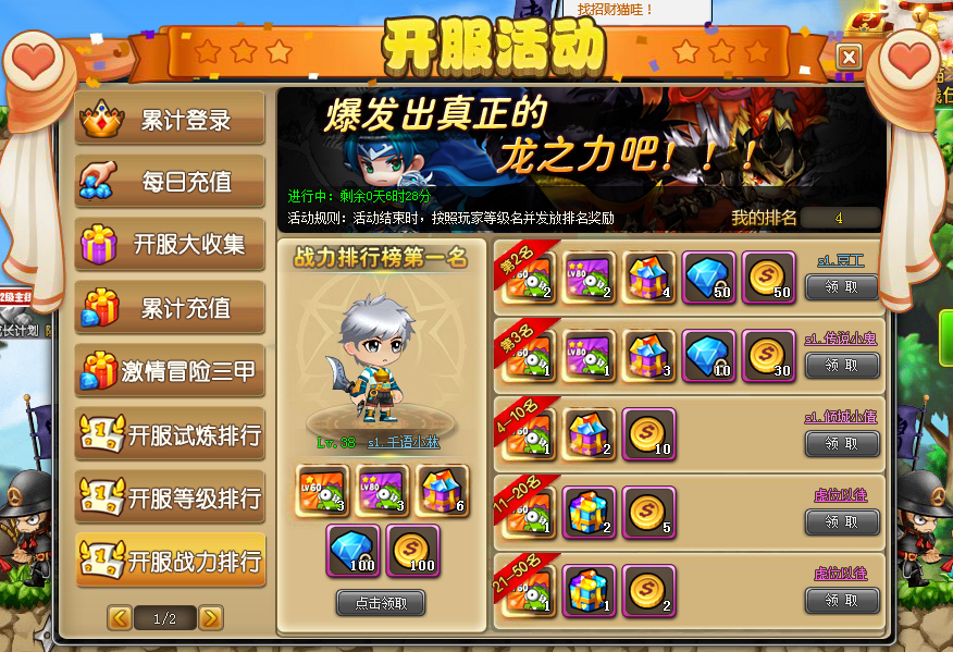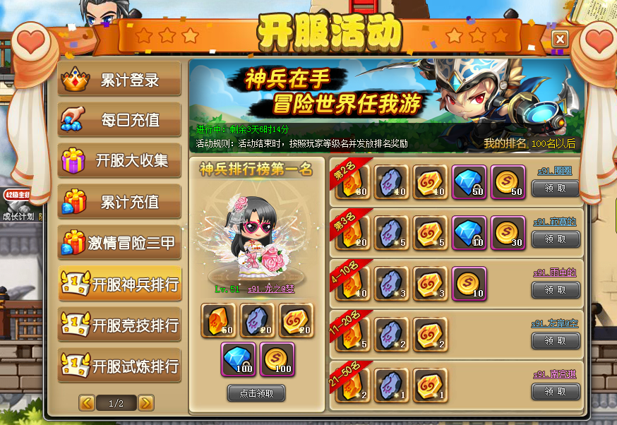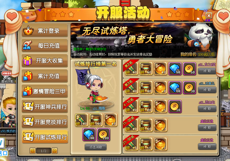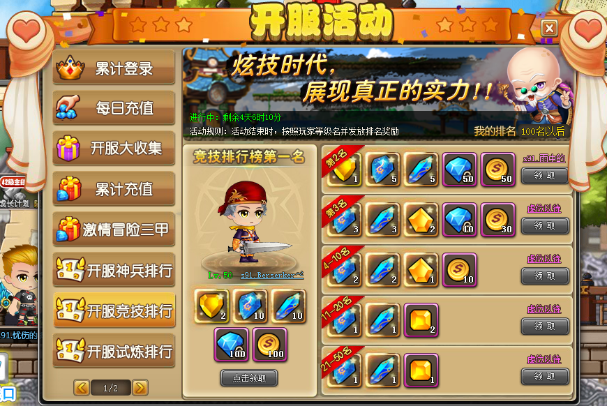达到相应排名时,就可领取相应的奖励,每档奖励只能领取一次