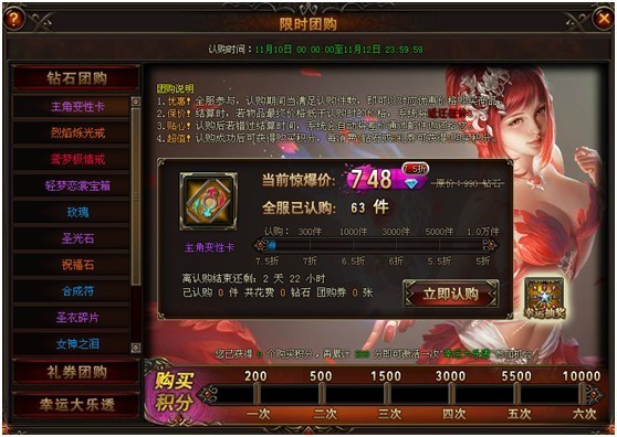 【团购券】:在参加钻石团购物品时,可使用团购券抵扣一定金额的钻石。