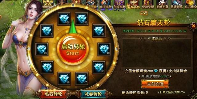2. 玩家每充值满200钻石即可活动1次钻石转轮的抽奖机会,但每日最多可获得25次;
