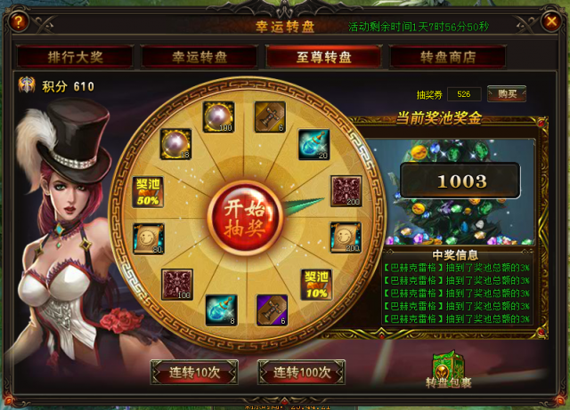 活动期间,玩家可点击主界面上方的【幸运转盘】按钮打开幸运转盘进行抽奖。