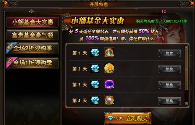 2、奖励仅限当天领取,例如维达之剑仅限开服第4天领取。