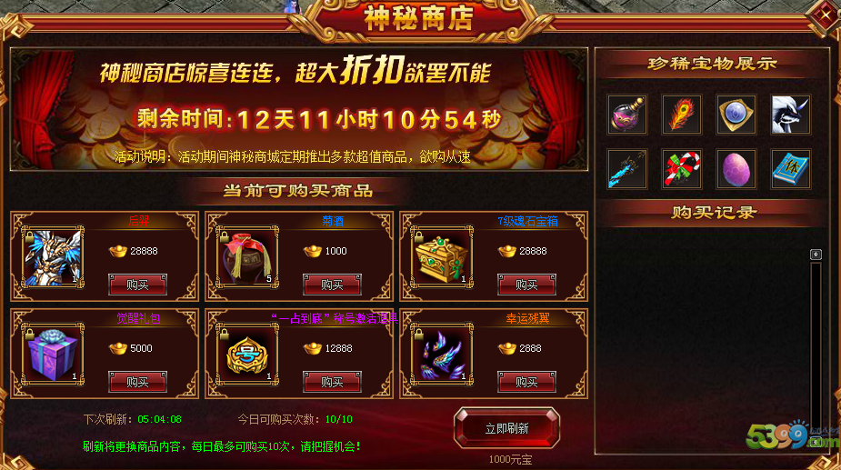 【活动内容】:活动期间,神秘商店定期推出多款超值商品,欲购从速!