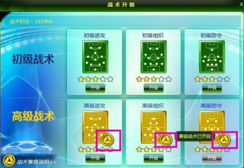 中场只能是中场?NO!!前锋照样行!后卫永恒的清道夫?中场照样中!只要达到3星的高级战术,相应战术阵形消耗20万银币即可开启“兼容位置”哦!位置大变,实力不变!欧冠战术兼容功能,排排看,带领你的球队称霸绿茵吧!点此查看战术兼容系统详细说明。