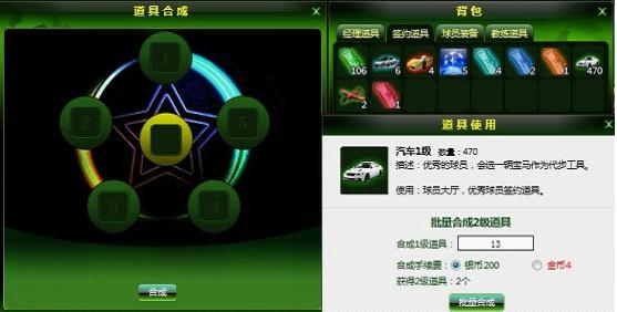 (3)对于合同、签约道具、装备,每5个低级道具才可合成出1个高等级道具,不足5个,则无法合成;对于教练合同、教练道具,每3个低级道具才可合成出1个高等级道具,不足3个,则无法合成。