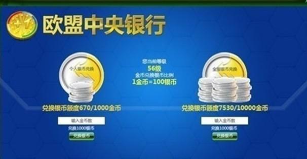 ”即可进入欧盟银行活动界面,利用金币即可兑换银币哦!兑换比例最高可达1金币=120银币哦!银币兑换限时限量,不要错过大好机会哦