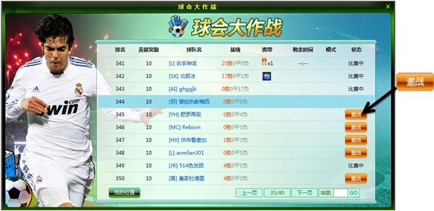 a.点击进入球队大作战,对其他玩家进行“邀战”;