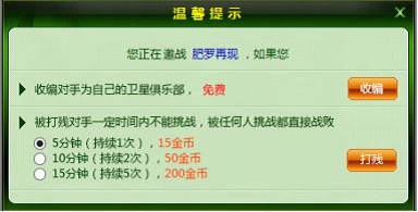 c.比赛失败:进入免战时间,一定时间(10分钟)内不能挑战主人队;
