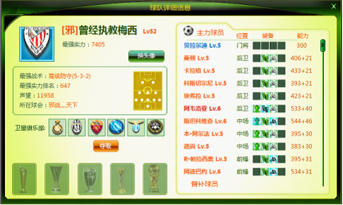 b.使用夺取功能。夺取功能每次使用消耗10金币,被挑战的球队产生10分钟的夺取冷却,即:在这10分钟内,任何球队无法对该球队使用夺取功能。