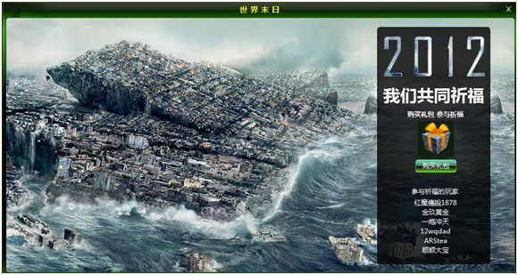 活动内容:活动期间内,通过点击聊天窗口上方入口“”开启活动,仅需886金币即可进行末日祈福,并可有末日神秘大礼奉上哦!