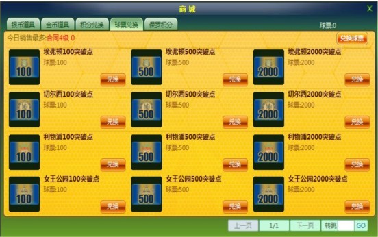 含突破积分500,需以500张球票兑换。每人限购3个。 含突破积分2000,需以2000张球票兑换。每人限购4个。