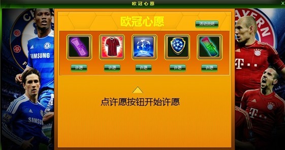 左四大奖:欧冠勋章*3,每次许愿仅需50金币;