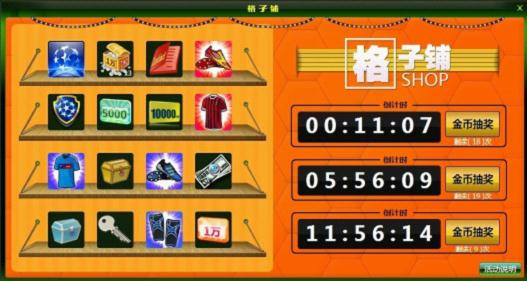 ” 即可开始格子铺抽奖活动。格子铺3档抽奖,倒计时归0时,即可进行格子铺免费抽奖,格子铺为大家准备了精美礼品,欧冠之魂、欧冠勋章、5级球员装备、5级高教合同等超级幸运奖期待你来抽取哦~分秒必争的你,如果不堪忍受等待之苦,也可以立即花一定量的金币进行抽奖哦!每日每人抽奖次数有限,机会难得哦~