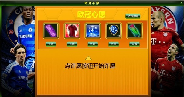 左四大奖:欧冠勋章*3,每次许愿仅需50金币;