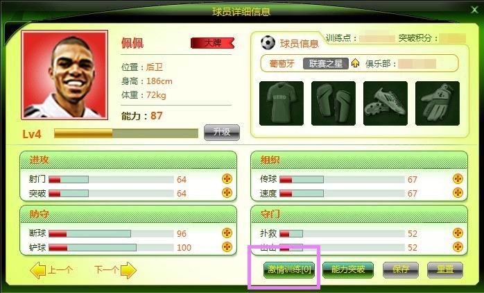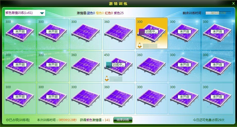 满61级的玩家可进入紫色训练场,在此场地训练可获得紫色激情值。挑战或占领时,球员品质无差别。
