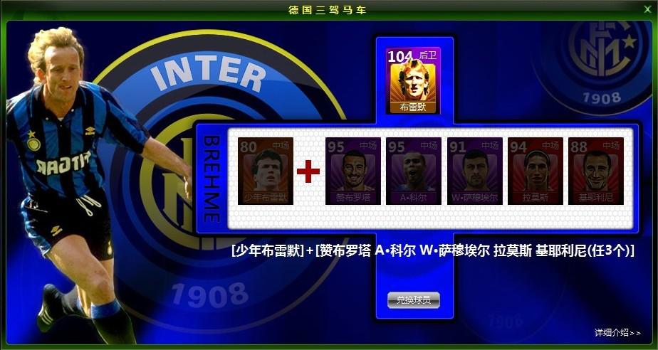 少年布雷默+赞布罗塔、A·科尔、W·萨穆埃尔、拉莫斯、基耶利尼(其中任意3个)可以合成巨星初始能力104后卫布雷默。