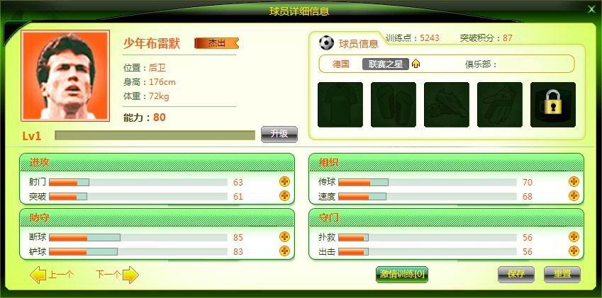 球员姓名:基斯林,产出地:德甲,位置:前锋,原品质/能力:杰出80,更新后品质/能力:大牌84