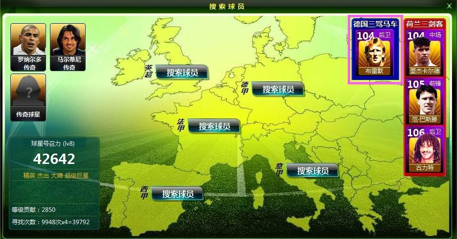 1、通过搜索德甲联赛有机会搜取到少年布雷默。玩家游戏等级达到61级才可进入合成窗口。合成巨星布雷默须消耗20万银币。